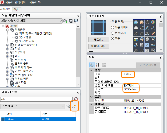 AutoCAD 사용시 CUI에서 EXTRIM 명령어를 찾을 수 없음