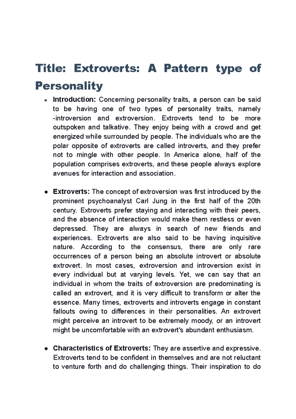 Psychology pattern of extroverts personality 1 - Title: Extroverts: A ...