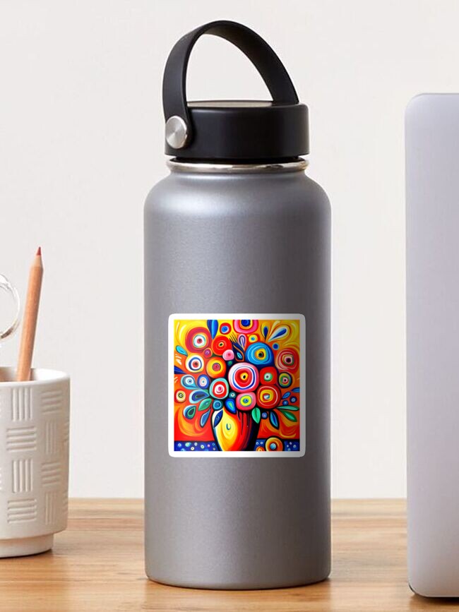"Exuberant Flowers in a Yellow Vase Still Life Painting" Sticker for ...