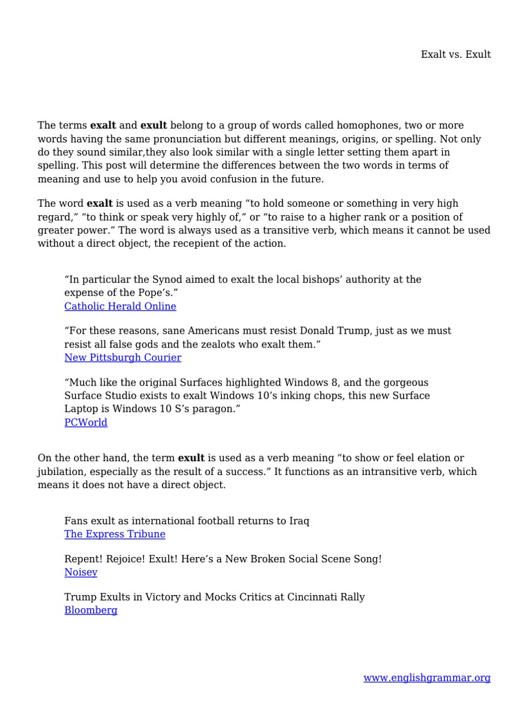 Exalt vs. Exult | PDF