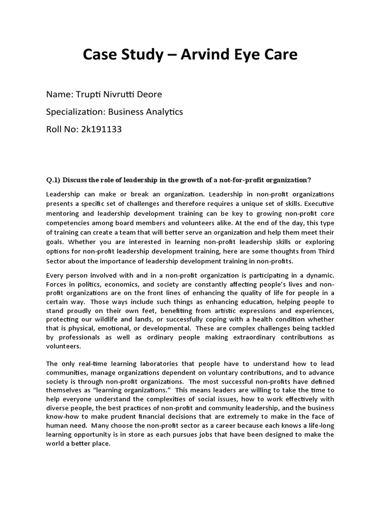 Case Study - Eye Care | PDF | Nonprofit Organization | Leadership