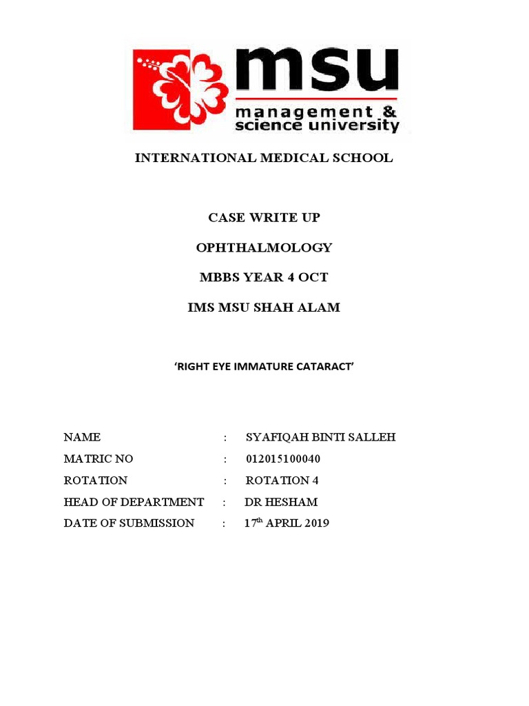 Right Eye Immature Cataract Case Study | PDF | Cataract | Human Eye