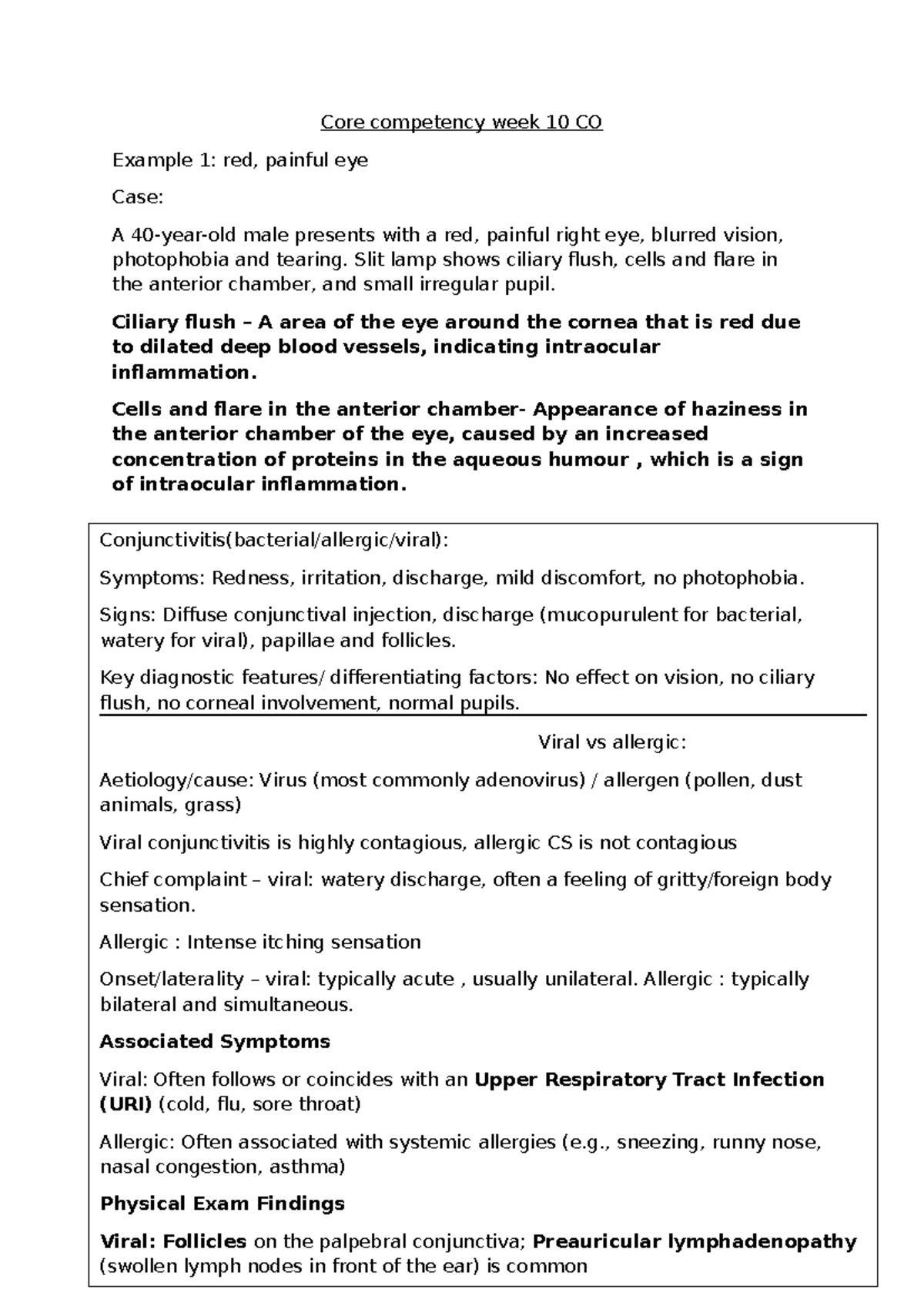 Core Competency Week 10: Red, Painful Eye Case Study - Studocu