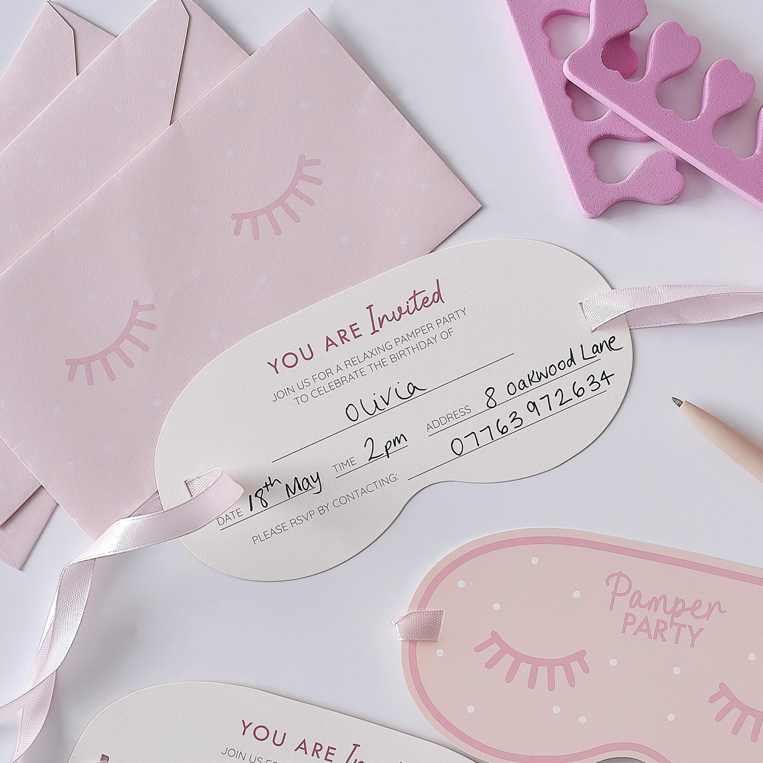 Eye Mask Shaped Pamper Party Invites - Pixie Party Boutique