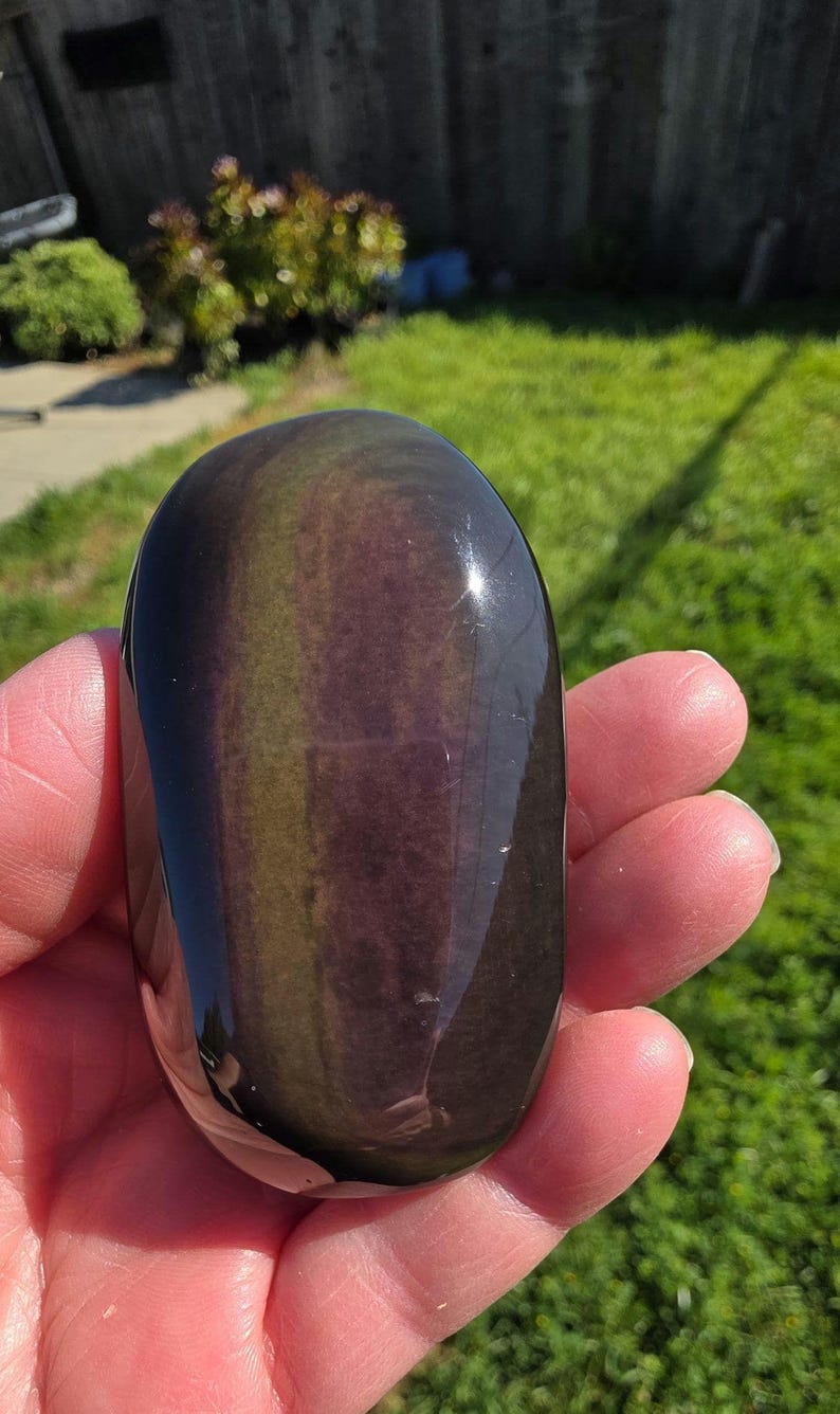 Rainbow Obsidian, Flashes Purple / Yellow/ Gold Palmstone Healing, Root ...