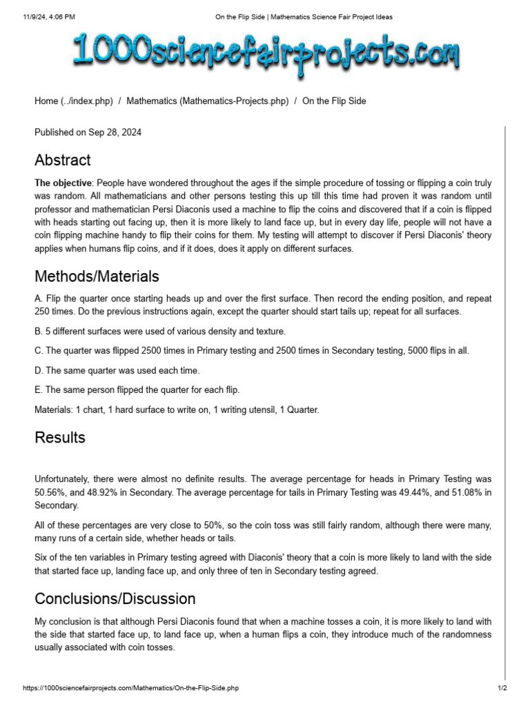 On The Flip Side - Mathematics Science Fair Project Ideas | PDF ...