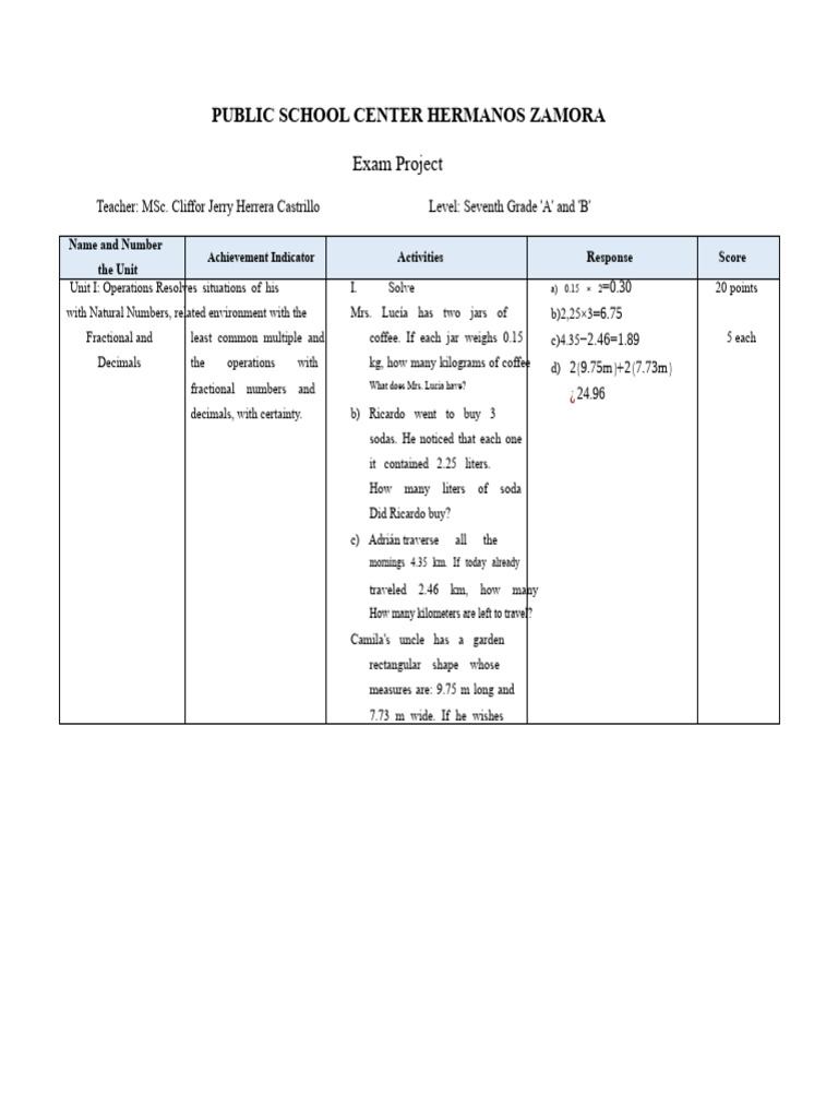 EXAM PROJECTS Mathematics | PDF | Subtraction | Mathematics