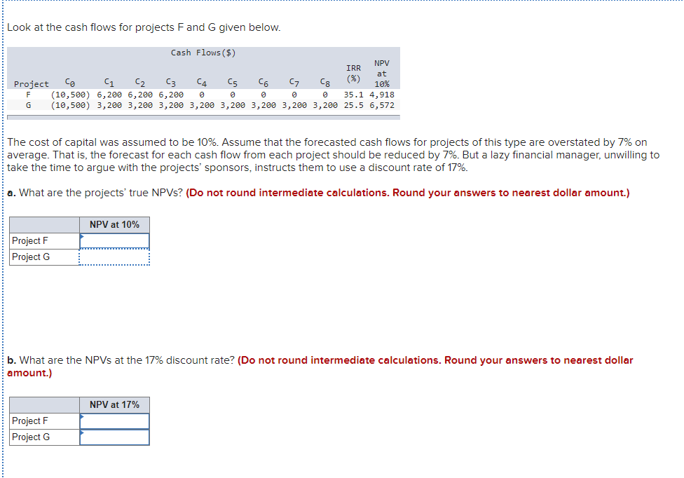 Solved A) at 10% Project F: Project G: B) at 17% Project | Chegg.com