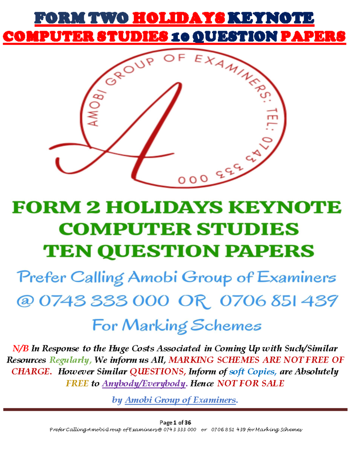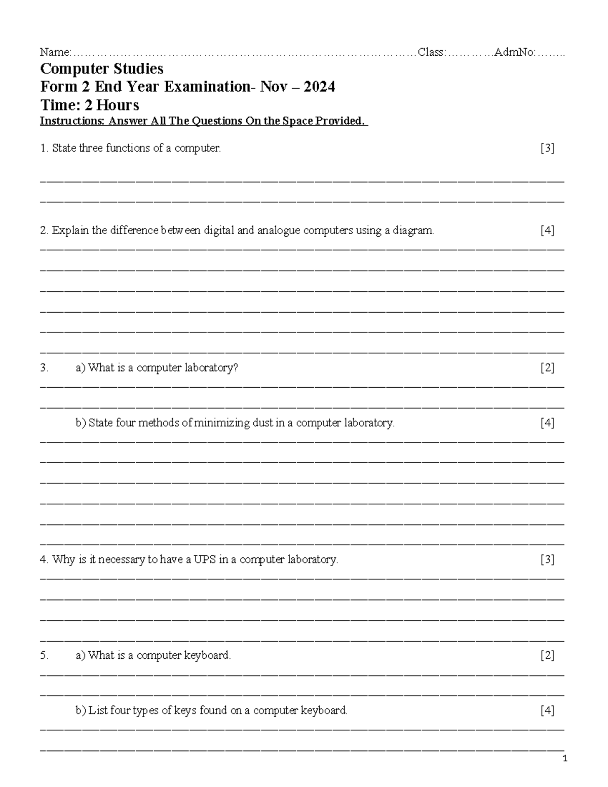 F2 Computer Studies 2024 End Year Exam Questions - Studocu