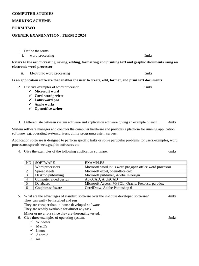 F2 Computer Marking Schemes - COMPUTER STUDIES FORM 2 END TERM -TERM ...