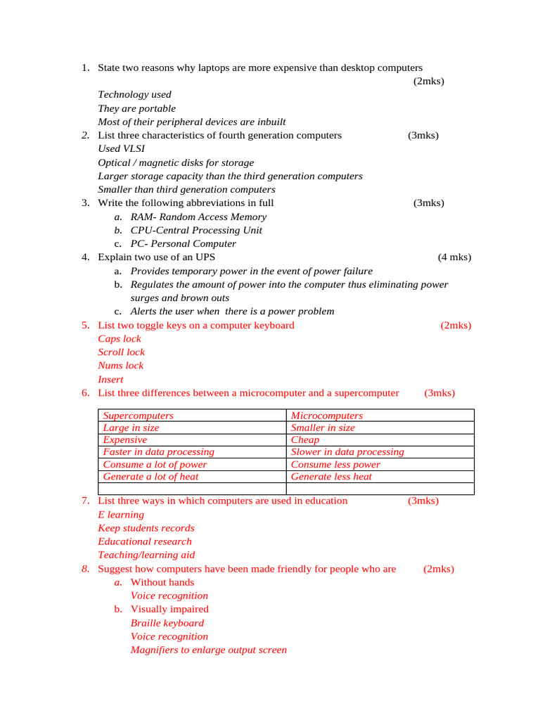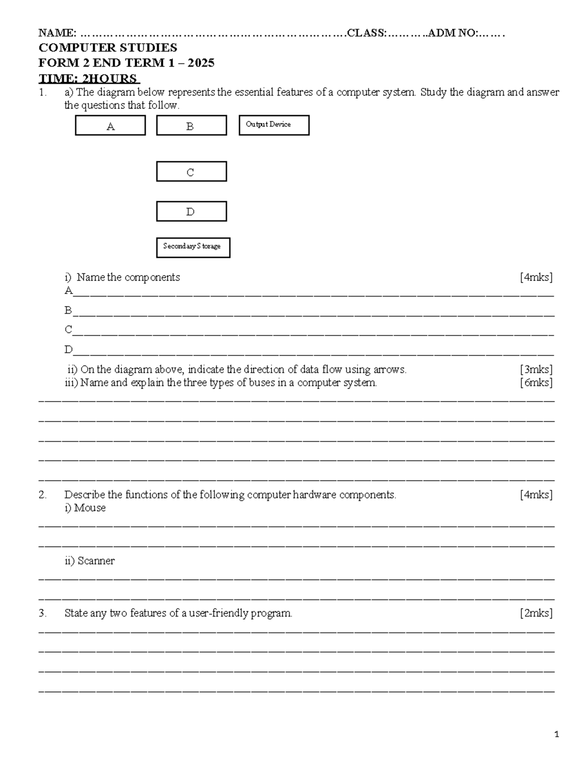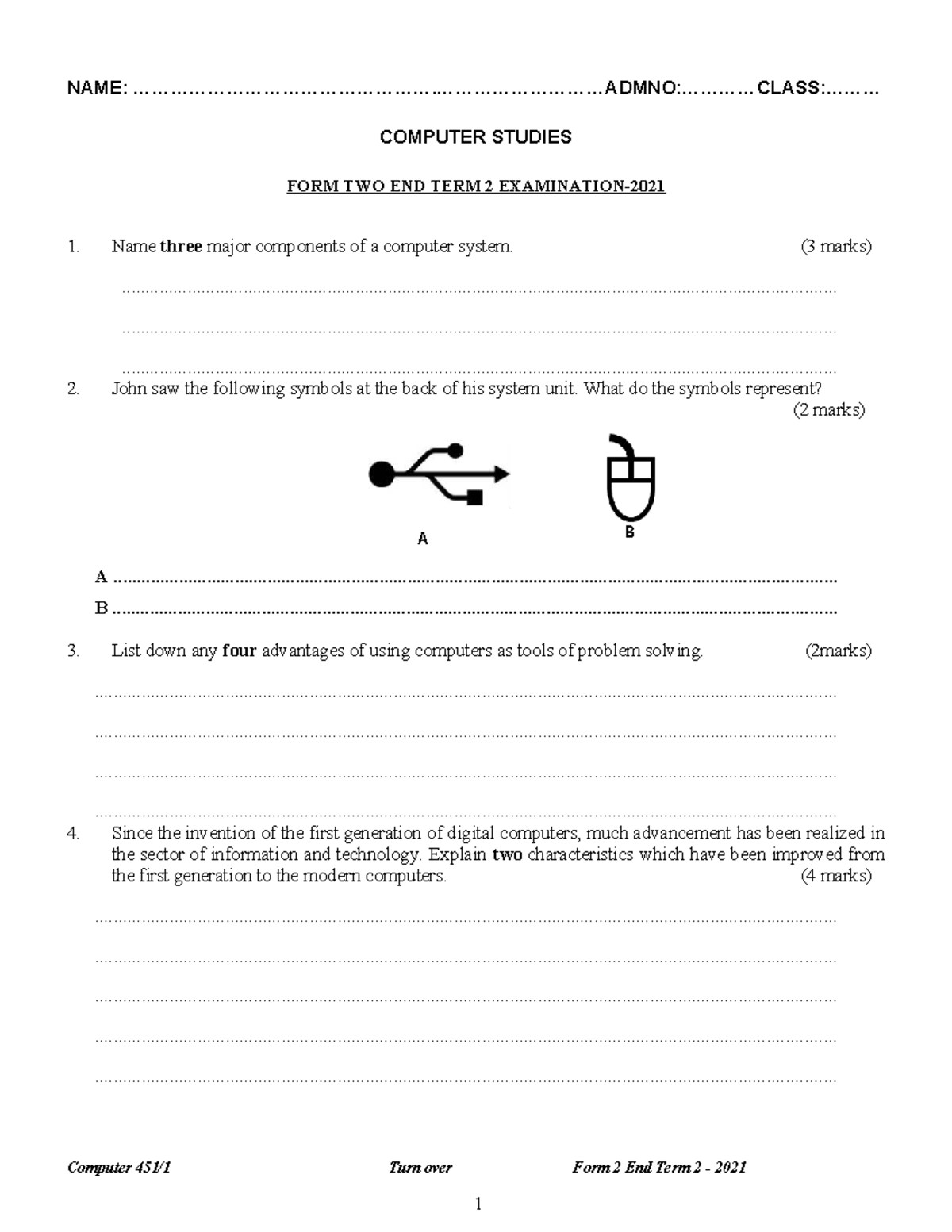 F2 Computer Studies Questions - COMPUTER STUDIES FORM 2 END TERM -TERM ...