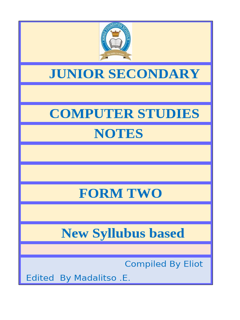 Computer Studies F2 QN - Education is the key to success - NAME: - Studocu