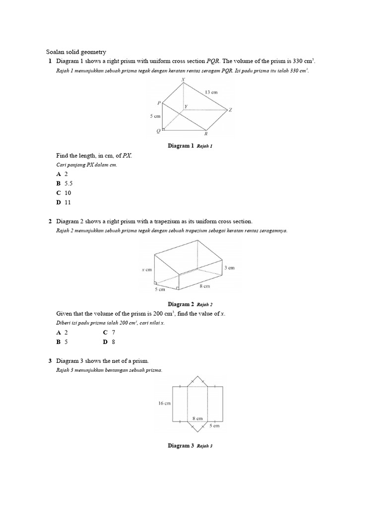 Soalan f2 3D Solid Geometry | PDF