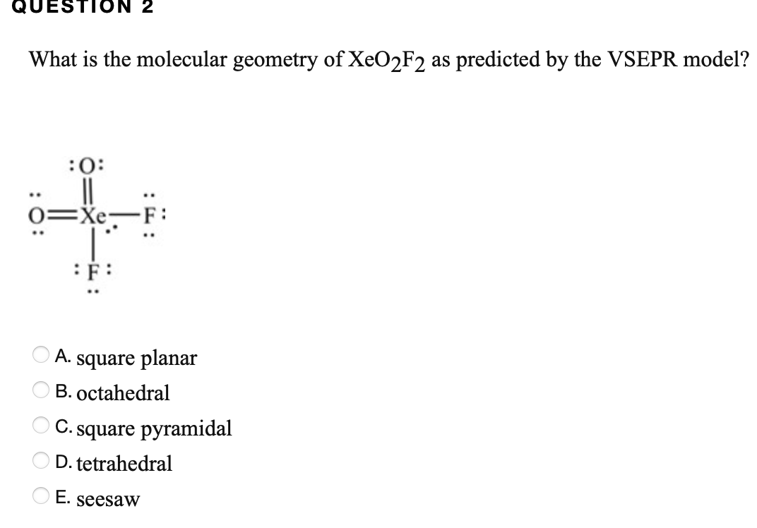 Solved What is the molecular geometry of XeO2 F2 as | Chegg.com