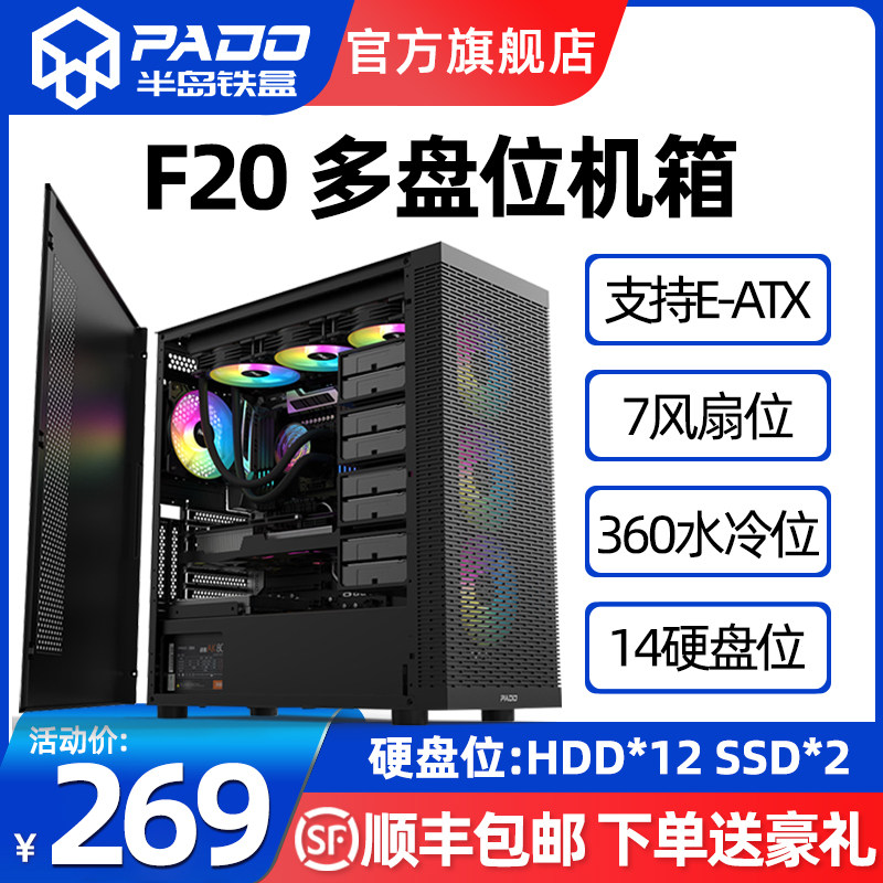 半岛铁盒F20多盘位机箱EATX全塔式NAS服务器HDD热拔插14硬盘电脑_虎窝淘