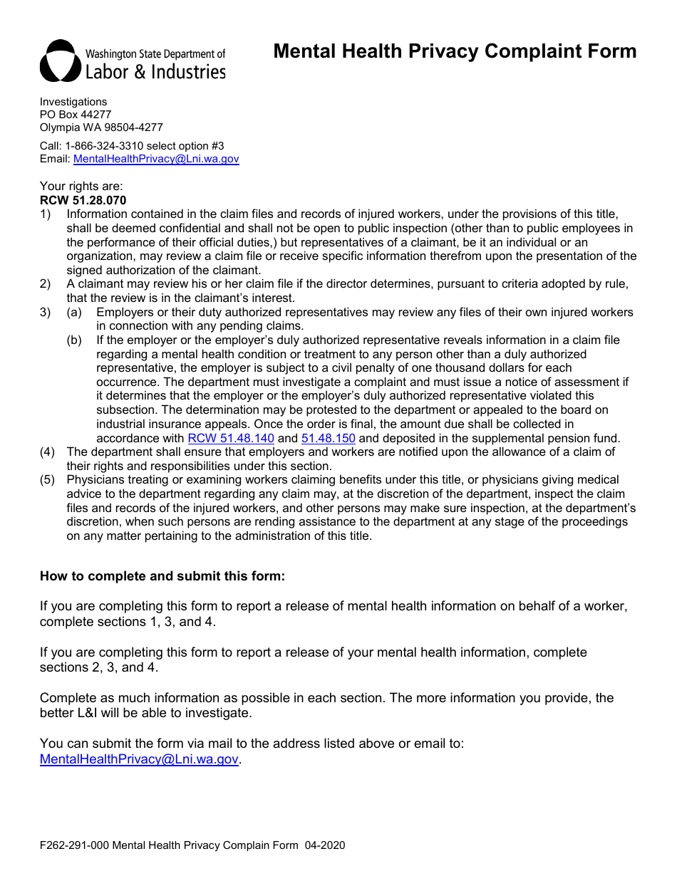 Form F262-291-000 - Fill Out, Sign Online and Download Fillable PDF ...