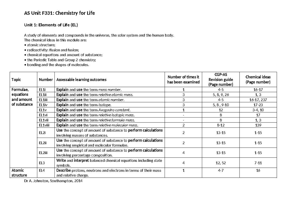 AS Unit F331: Chemistry for Life - Elements of Life Study Guide - Studocu
