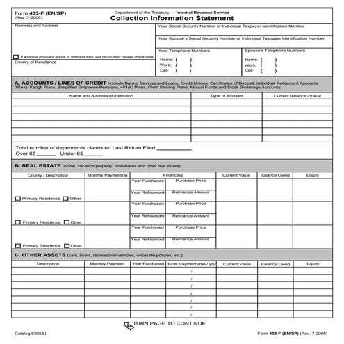 Form 433-F - Complete the IRS Collection Information Statement ...