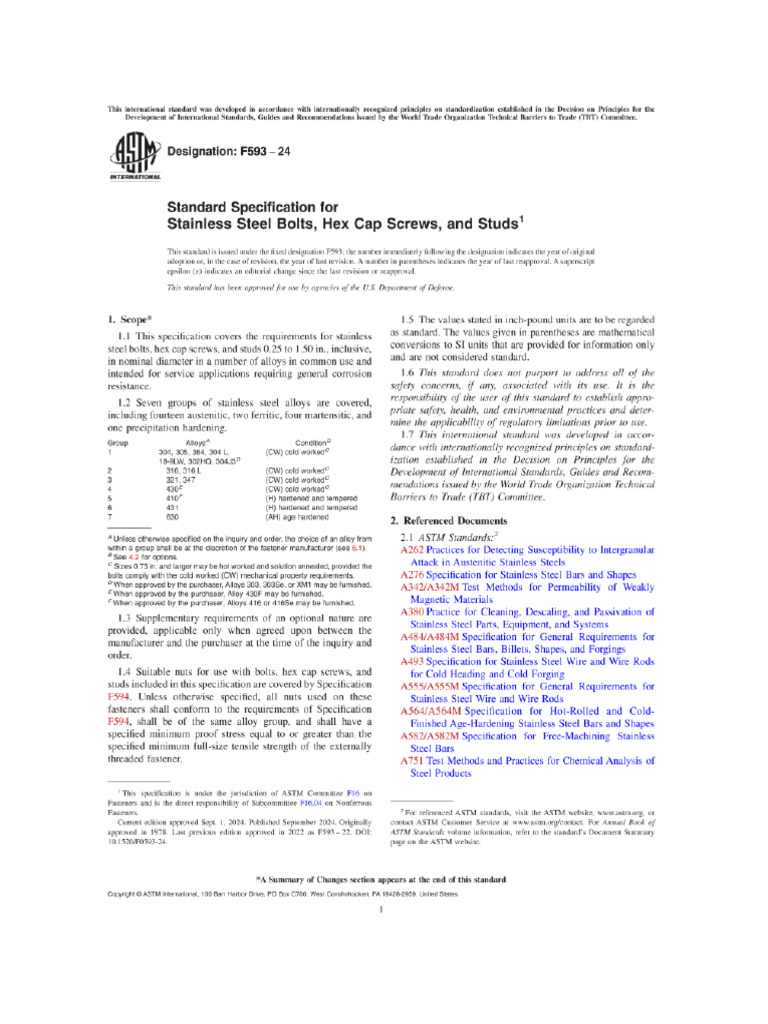 ASTM F593-13a - Standard Specification for Stainless Steel Bolts, Hex ...