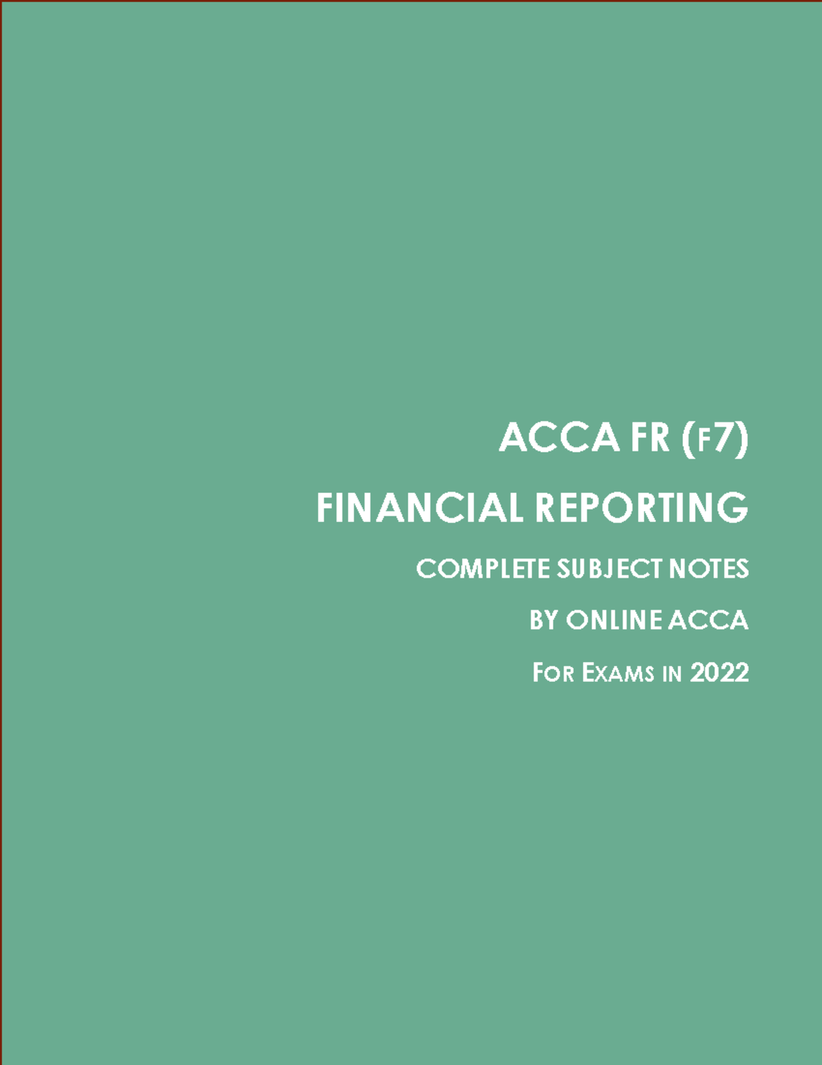 ACCA FR (F7) Comprehensive Exam Notes for Financial Reporting - Studocu