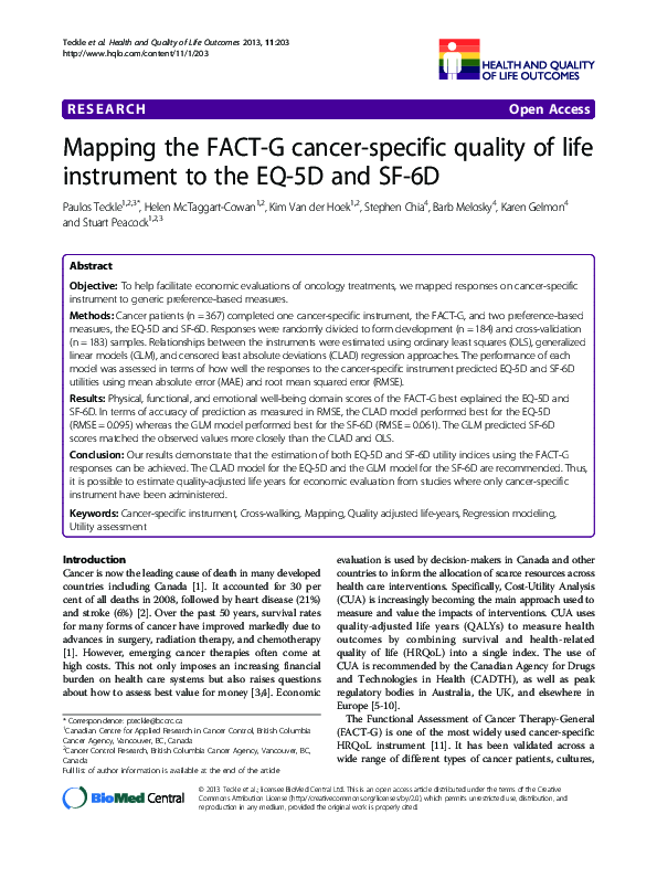 (PDF) Mapping the FACT-G cancer-specific quality of life instrument to ...