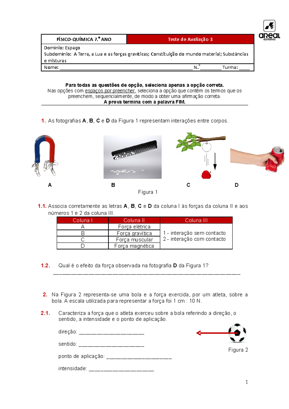 Ae fq7 teste 3 jan2022 - exercícios - FÍSICO-QUÍMICA 7. ANO Teste de ...