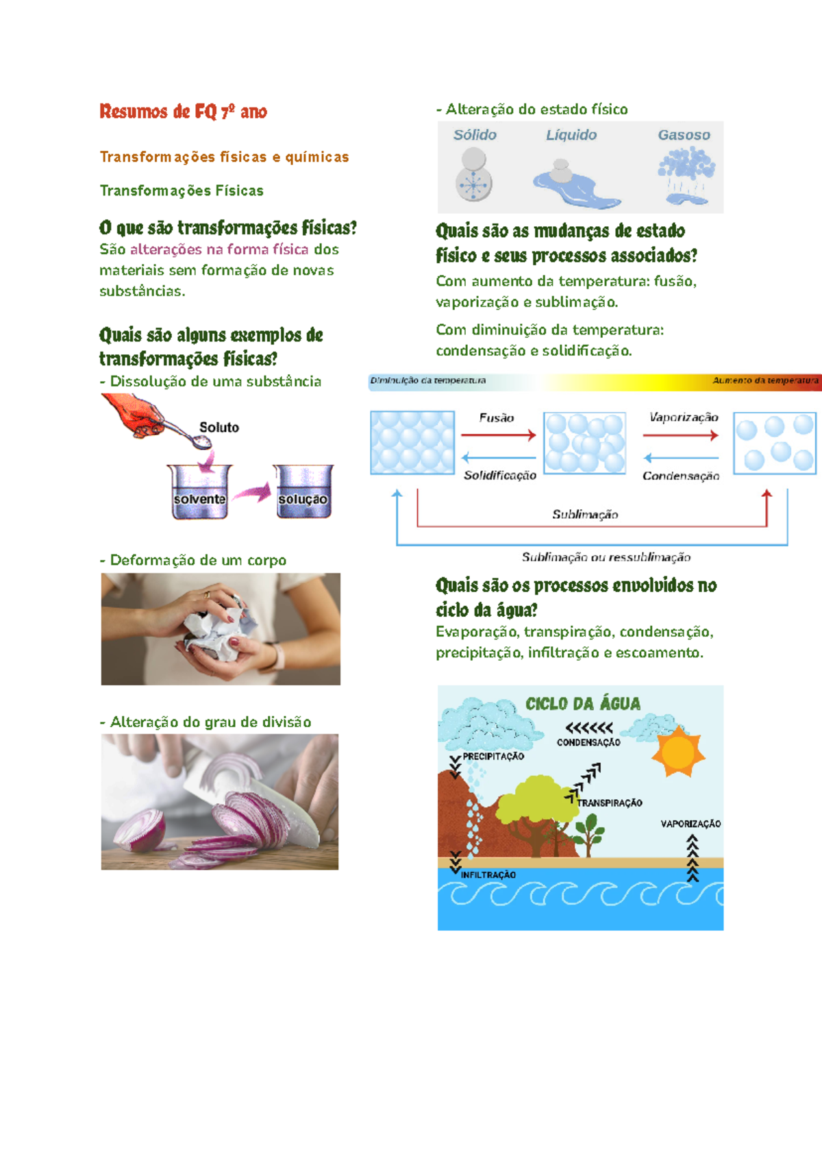 Resumos de FQ 7º ano: Transformações Físicas e Químicas - Studocu