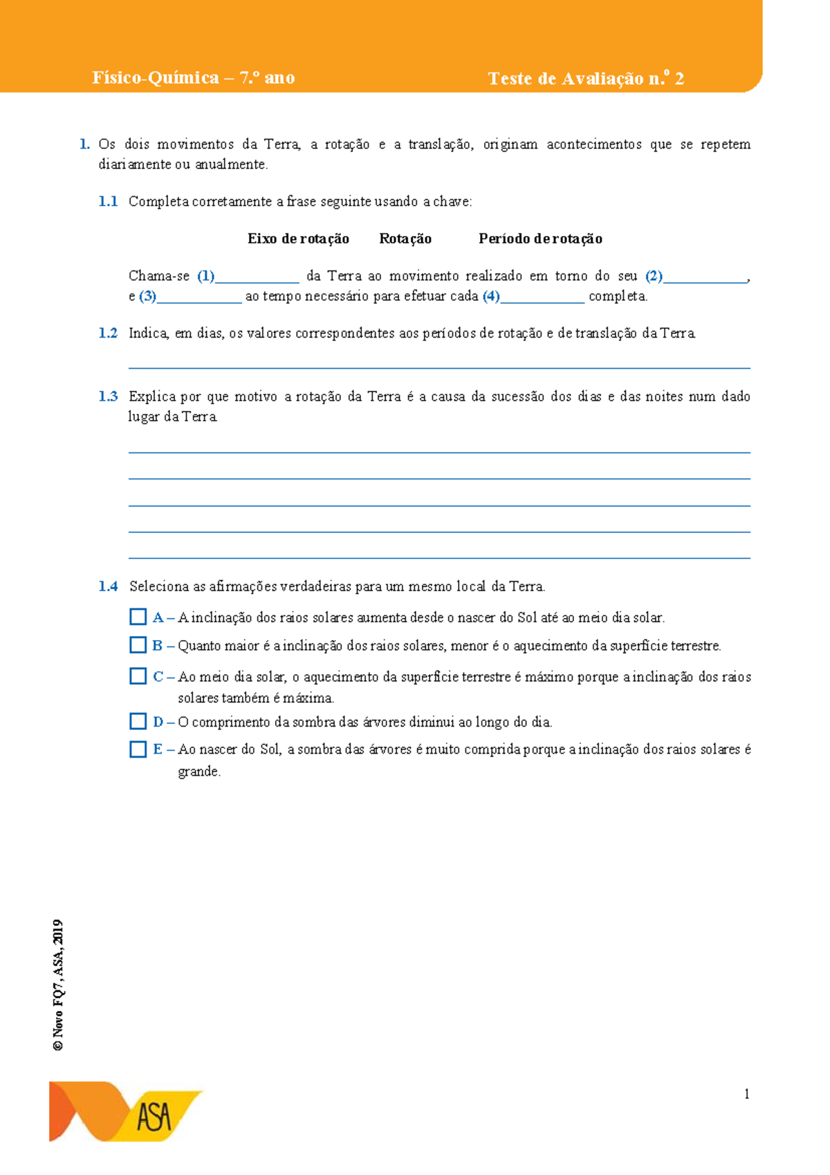 Teste 02 - © Novo FQ7, ASA, 2019 Teste de Avaliação n. Físico-Química ...