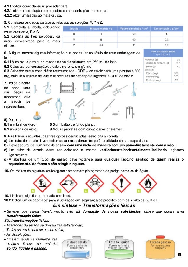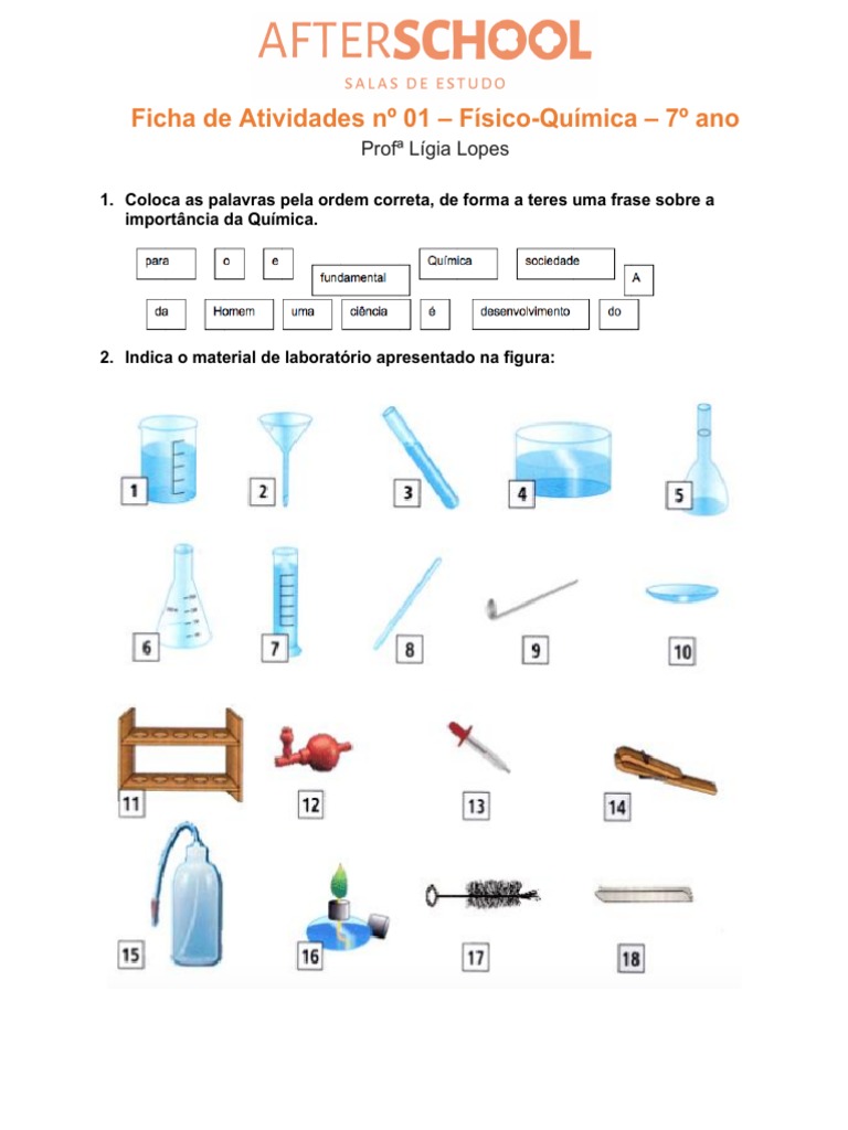 Ficha fisico quimica 7 ano material de laboratorio e simbolos de aviso ...