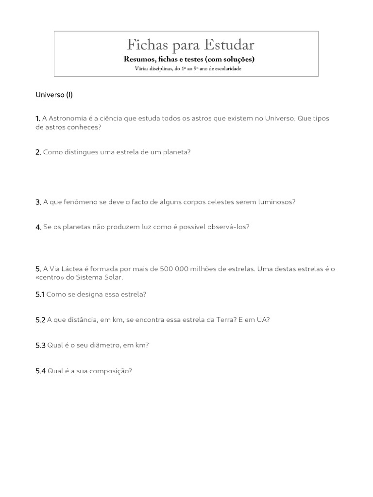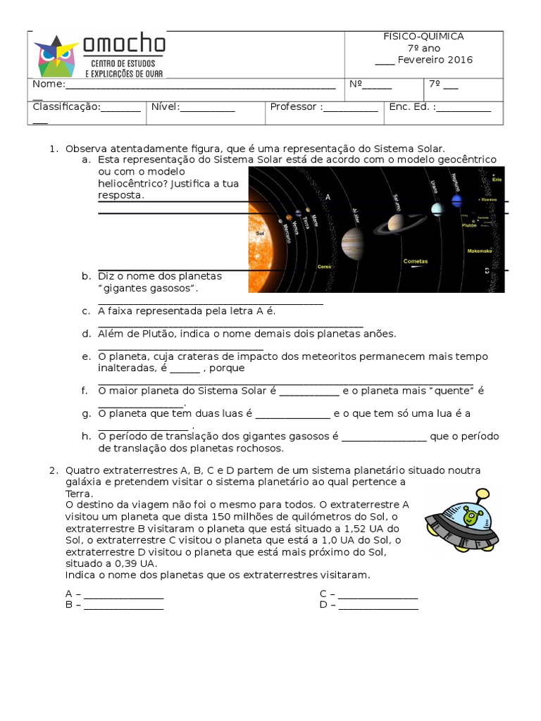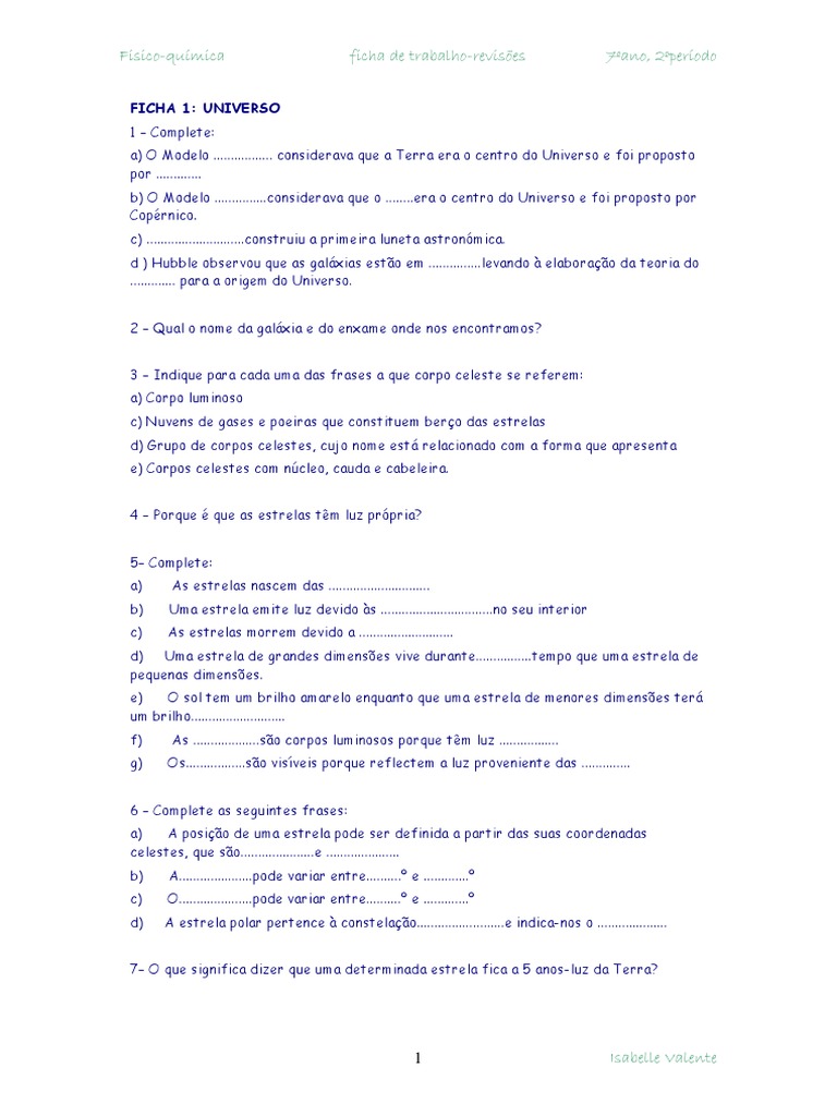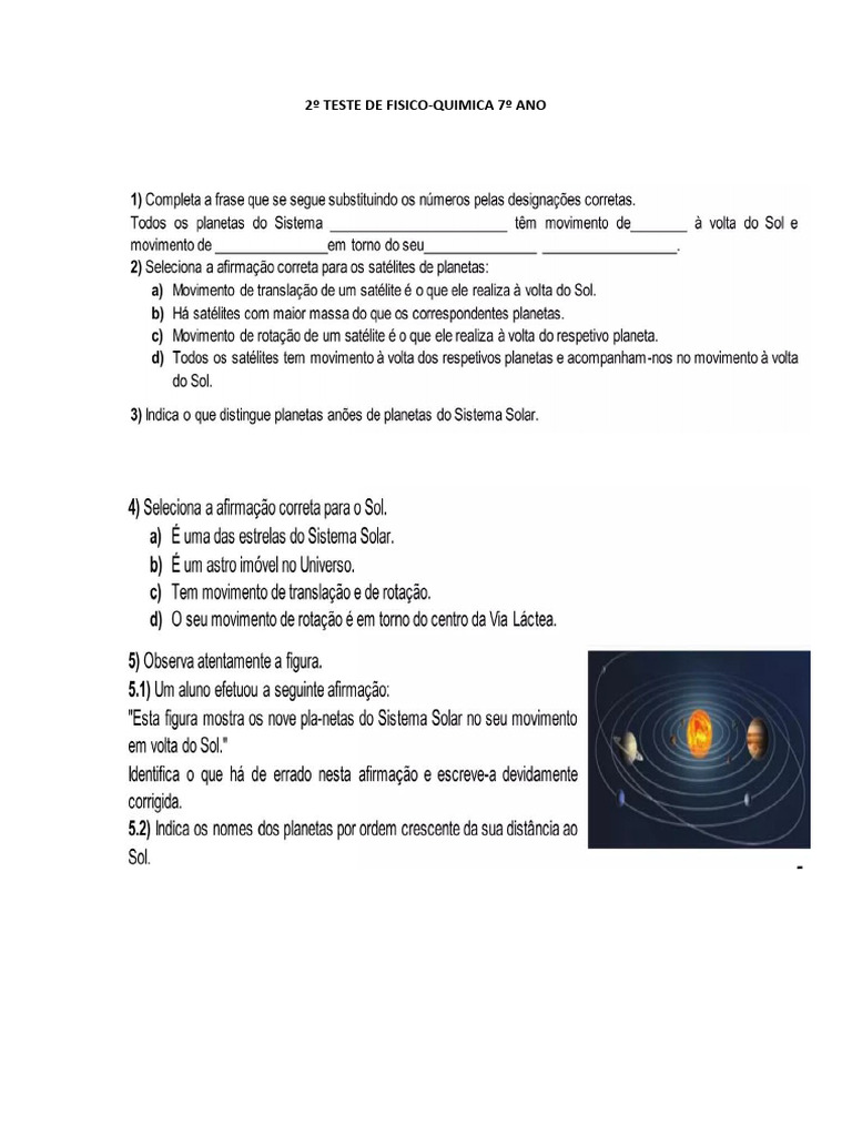Fichas de Físico-Química 7º Ano com Soluções | PDF | Estrelas | Sistema ...