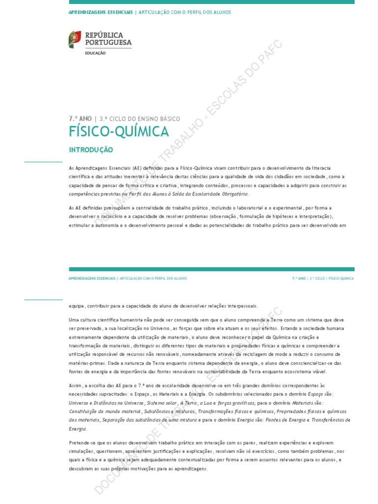 Físico - QuÍmica 7º Ano - Preparar os Testes Aprendizagens Essenciais ...