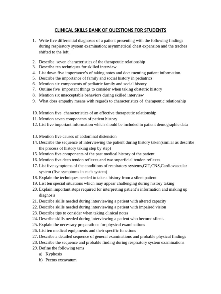 Clinical Skills Bank of Questions | PDF | Physical Examination ...