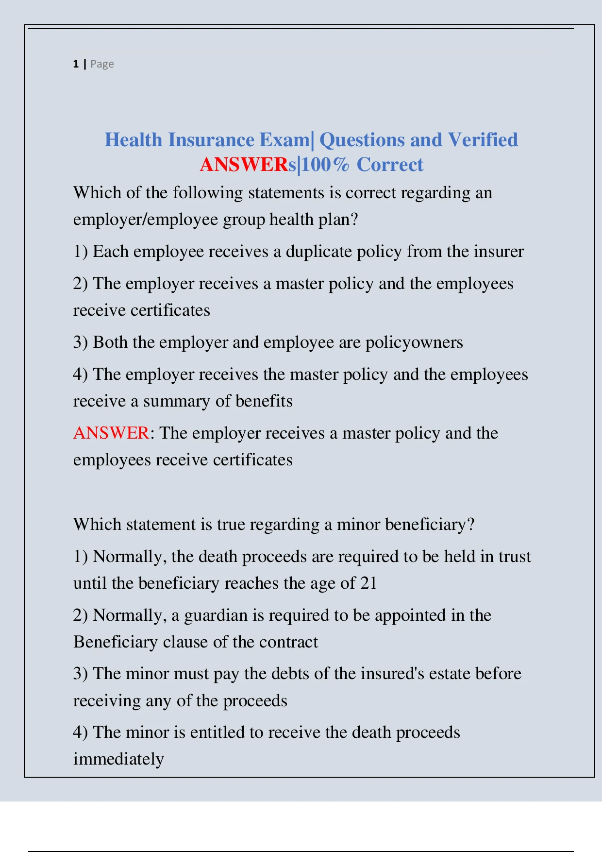 Health insurance exam questions with answers () - Health Care - Stuvia US