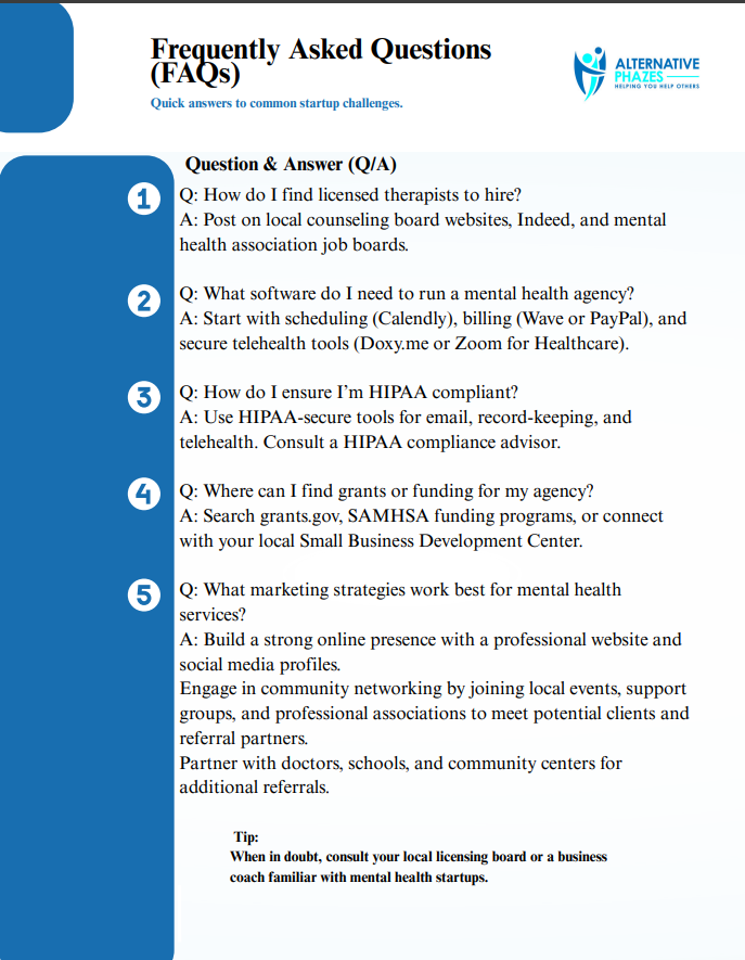 Mental Health Agency FAQ's Form — Alternative Phazes