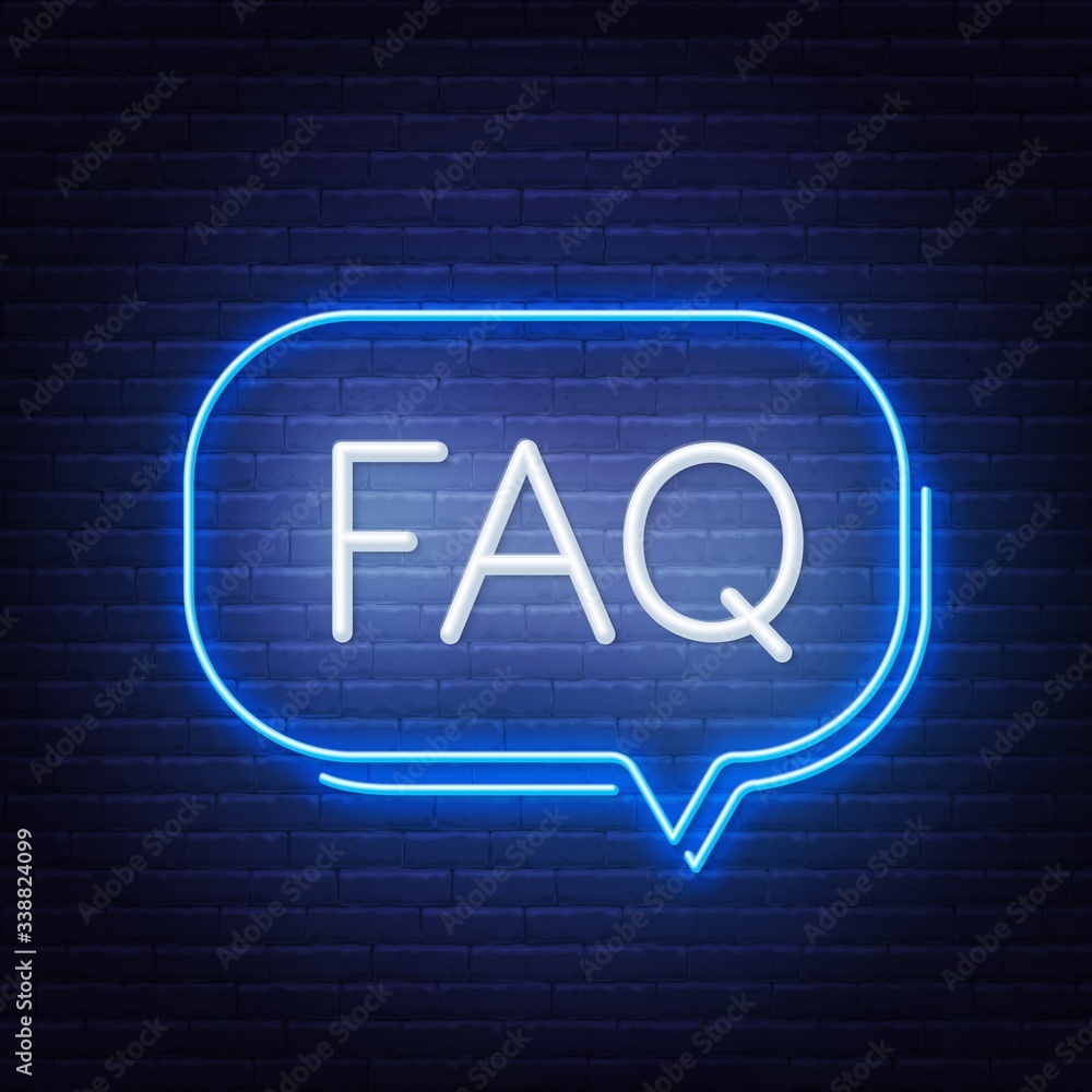 FAQ Frequently asked questions neon sign on brick wall background ...