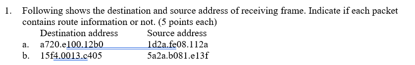 Solved 1. Following shows the destination and source address | Chegg.com