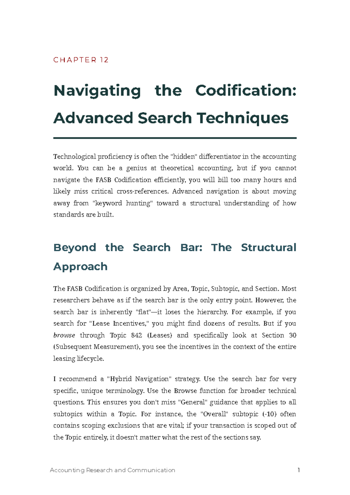 CHAPTER 12: Advanced Search Techniques in FASB Codification - Studocu