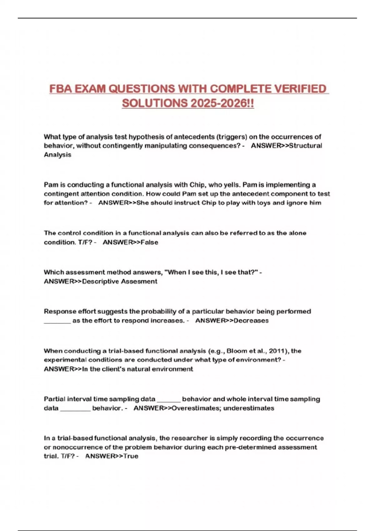 FBA (Functional Behavioral Assessment) BUNDLED UPDATED QUESTIONS AND ...