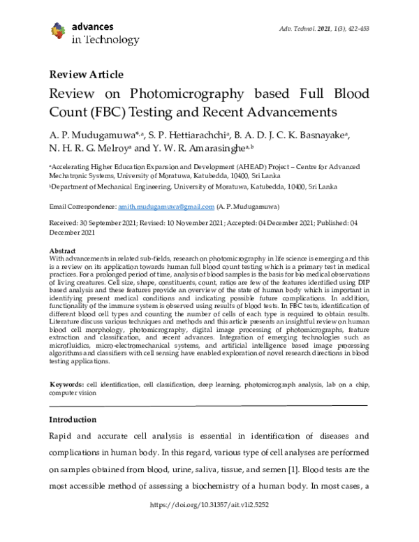 (PDF) Review on Photomicrography based Full Blood Count (FBC) Testing ...