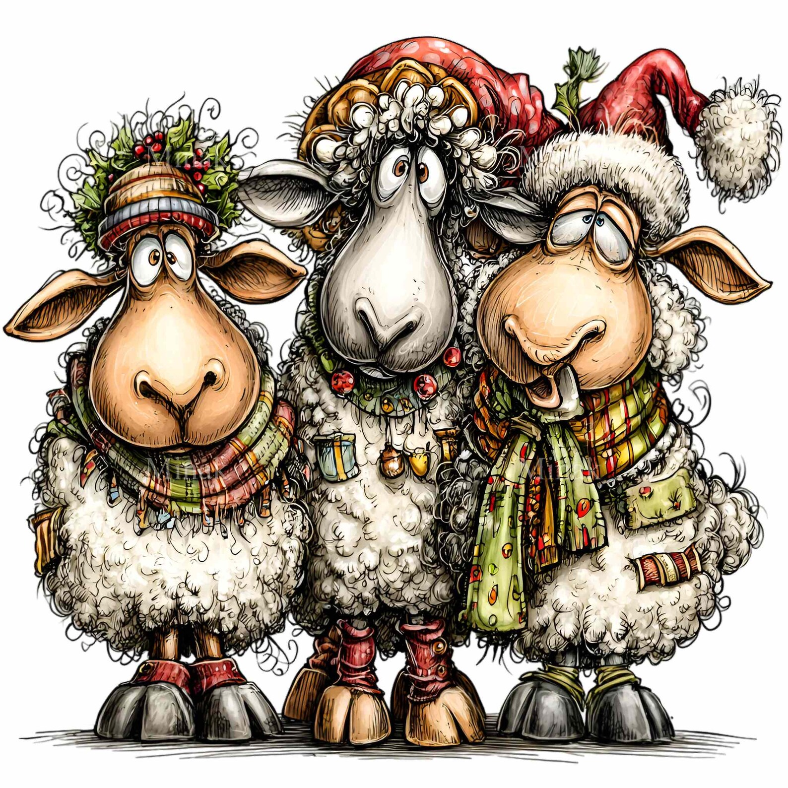10 PNG Festive Sheep Clipart – Funny Christmas Animal PNG – Cute Winter ...