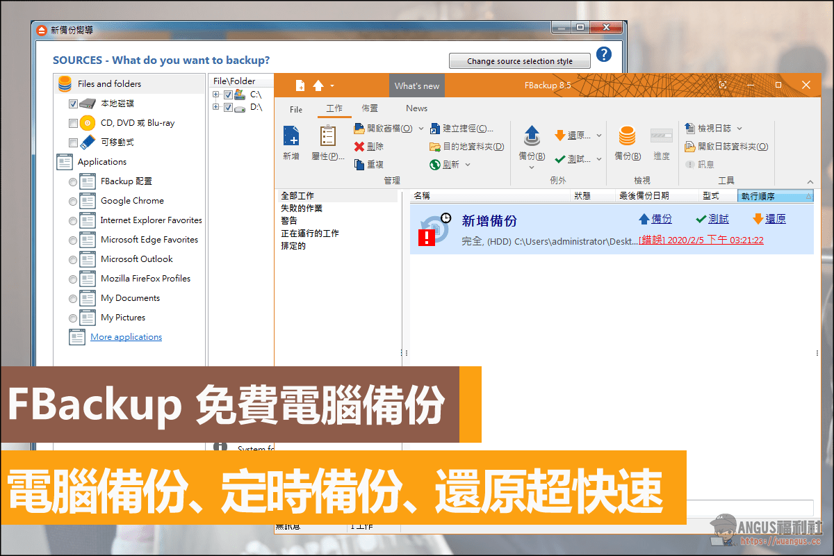 FBackup 免費電腦備份,定時備份硬碟資料不怕掛點! - Angus福利社
