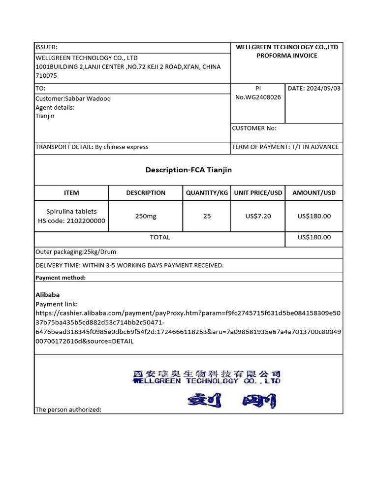 Description-FCA Tianjin: Wellgreen Technology Co.,Ltd Proforma Invoice ...