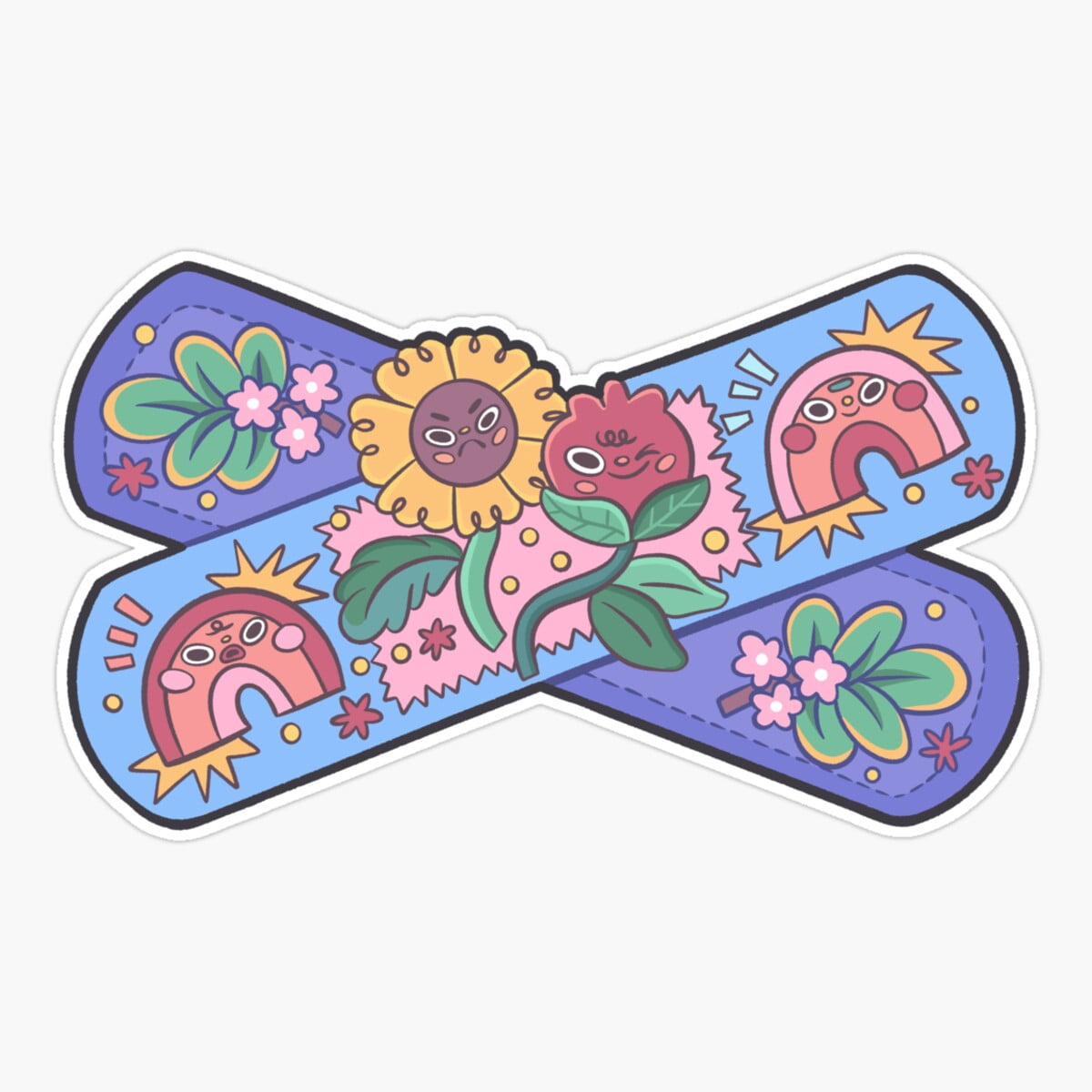 Onim Flowers And Rainbow Patch Cute Sticker, Phone Decal Water Bottle ...