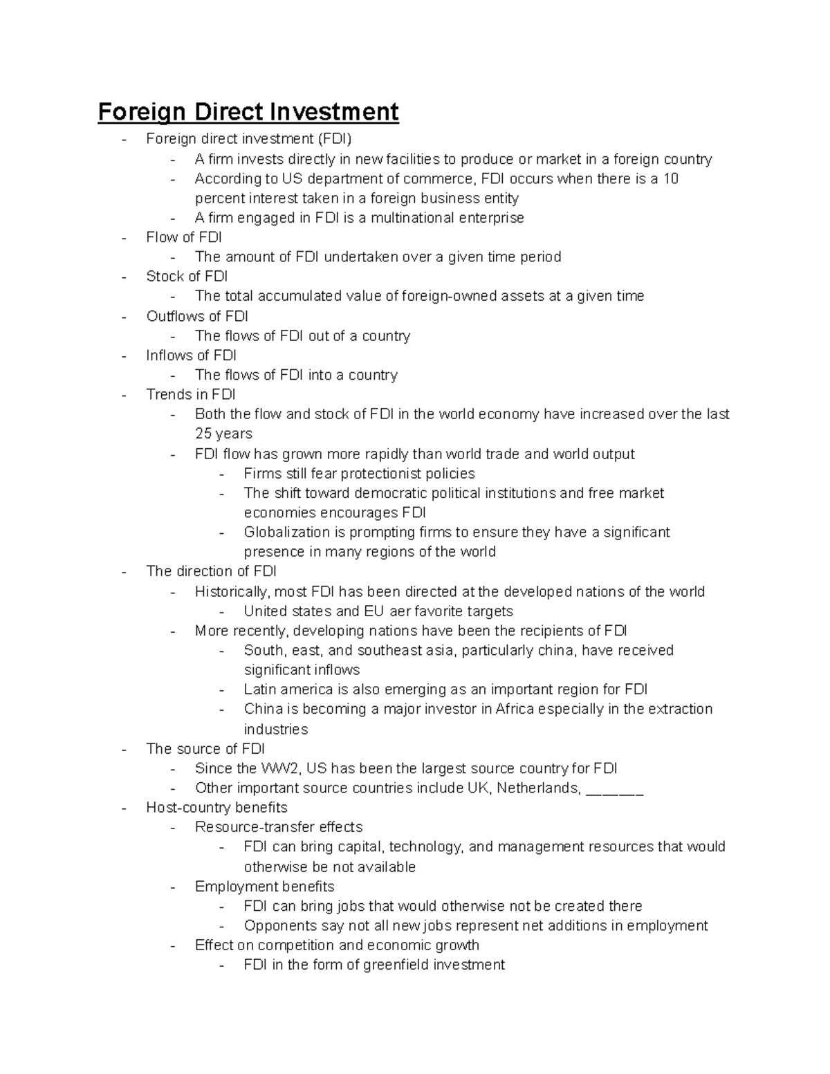 Explain the concept of Foreign Direct Investment. .pdf