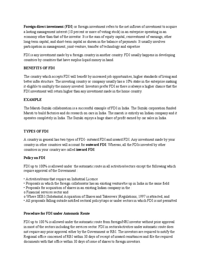 Comprehensive Guide to Foreign Direct Investment (FDI) | PDF | Foreign ...