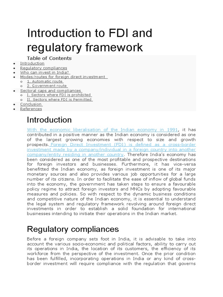 FDI and Regulatory Framework | PDF | Foreign Direct Investment ...