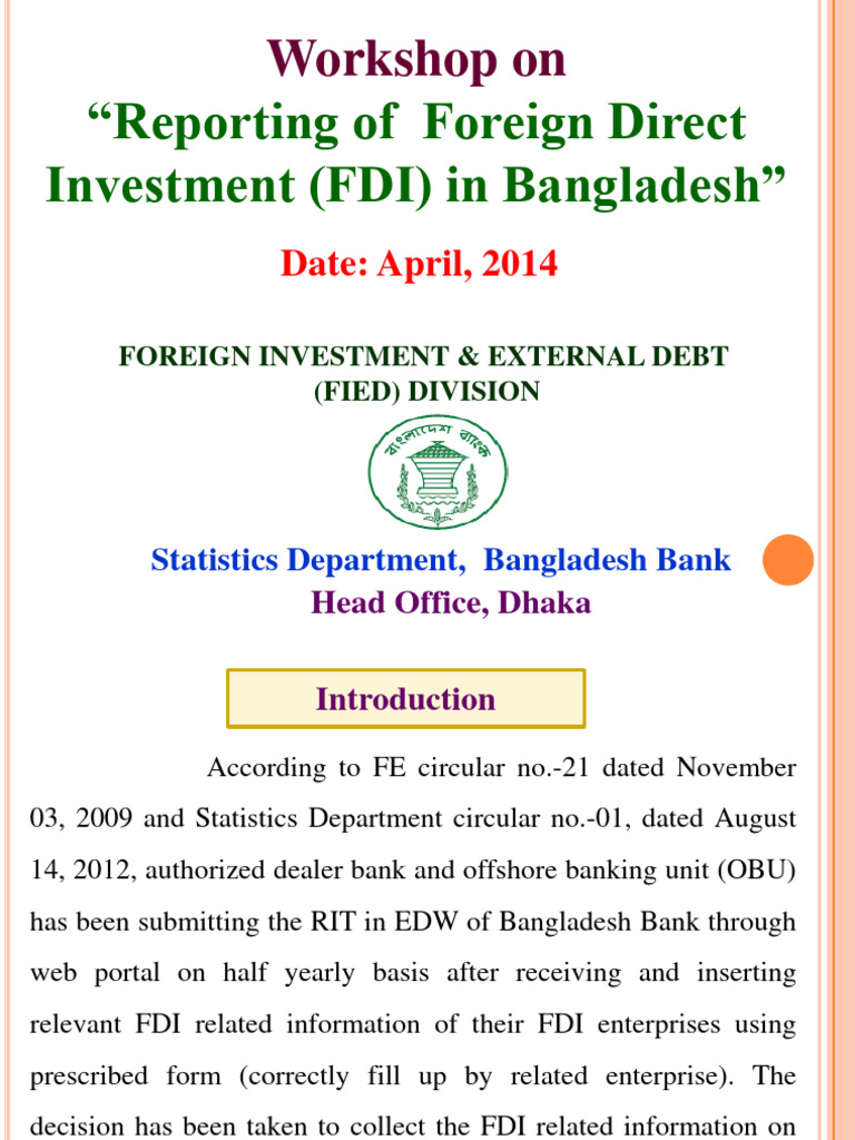 FDI Reporting Workshop in Bangladesh | PDF | Foreign Direct Investment ...