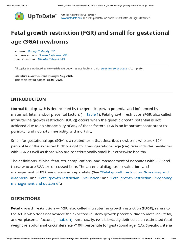 Fetal Growth Restriction (FGR) and Small For Gestational Age (SGA ...