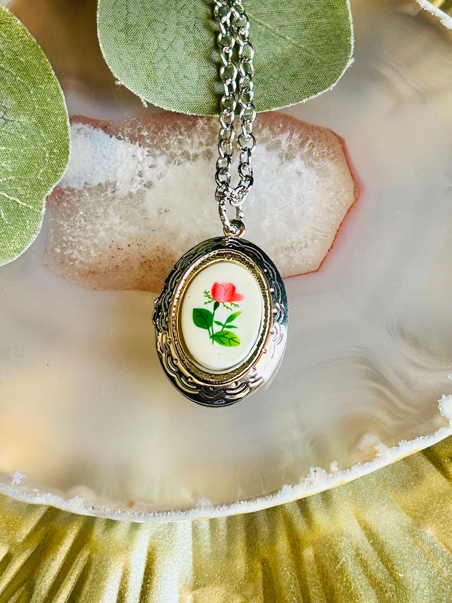 Vintage Rose Oval Locket Necklace, Womens Boho Hippie Love Flower ...