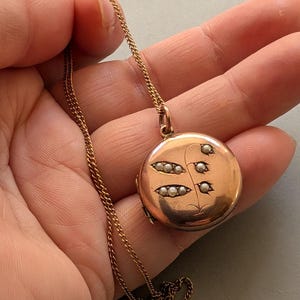 Antique Art Nouveau Gold Filled Locket Necklace: Floral Photo Pendant